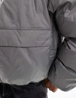 Converse Short Puffer Jacket In Grey For Women Light Grey